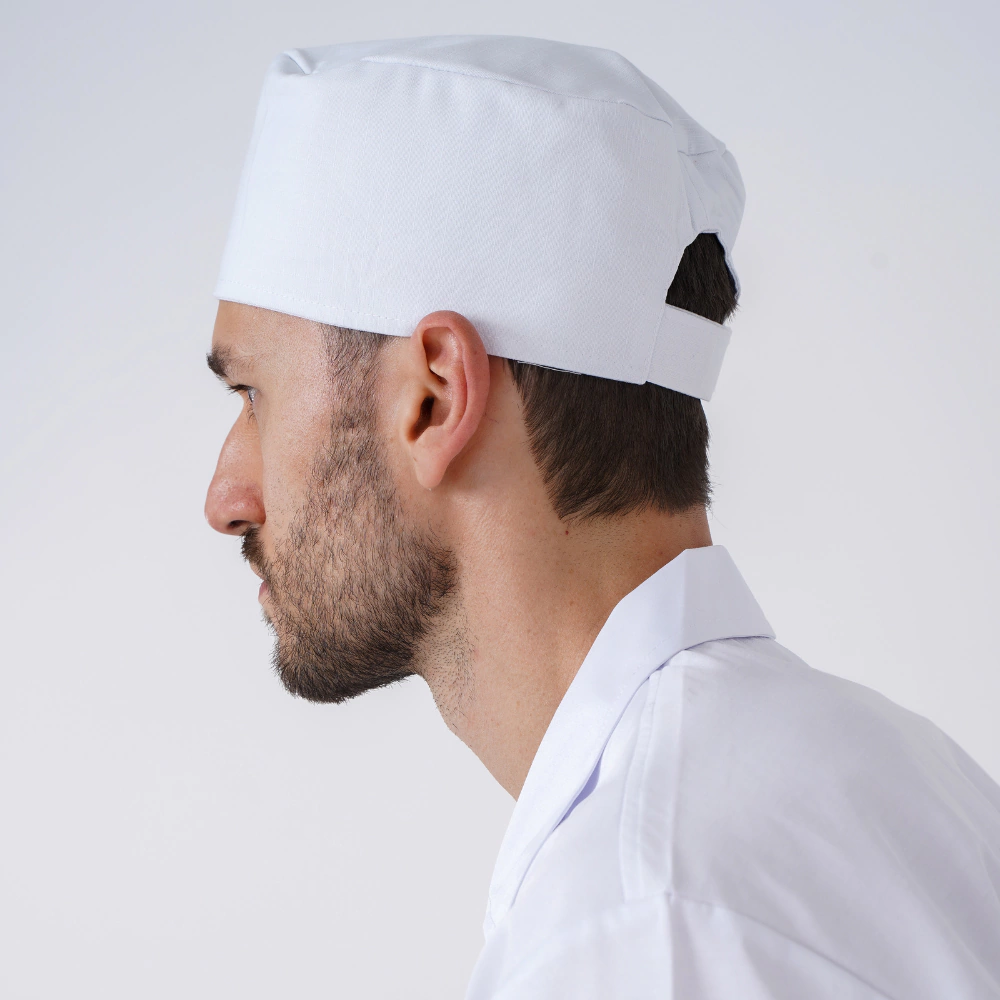 - Design Clássico: Com o seu formato tradicional de bibico coquinho, esta touca oferece uma cobertura eficaz para o cabelo, mantendo-o seguro e protegido durante todo o expediente na cozinha.